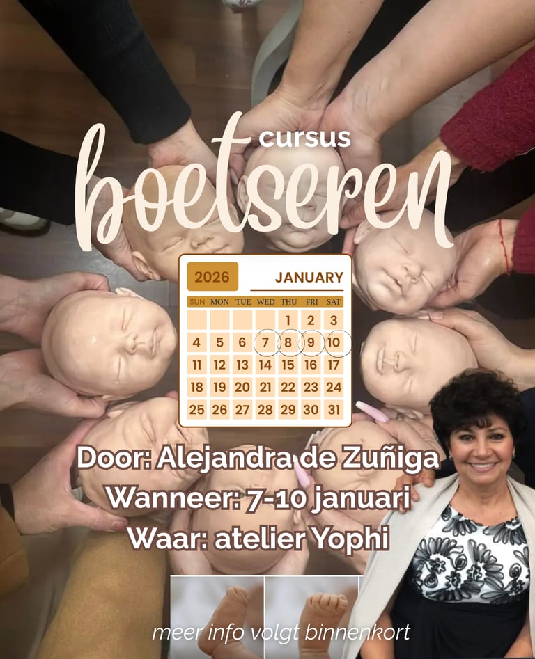 Tijdens deze intensieve vierdaagse training leer je hoe je een compleet babyhoofd en volledige ledematen boetseert met de exclusieve techniek van Alejandra.